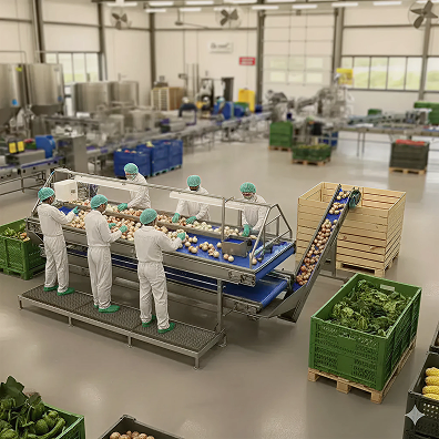 Na tym etapie linia technologiczna REKEN oddziela surowiec według rozmiaru, jakości i kształtu, przygotowując go do dalszej obróbki. Precyzyjne kalibrowniki KA-780 oraz systemy separujące w koszach przyjęciowych umożliwiają skuteczne rozdzielanie warzyw bez ich uszkadzania. Urządzenia pozwalają na płynną regulację odstępów między rolkami oraz dopasowanie do rodzaju produktu — od cebuli i ziemniaków po marchew i buraki.