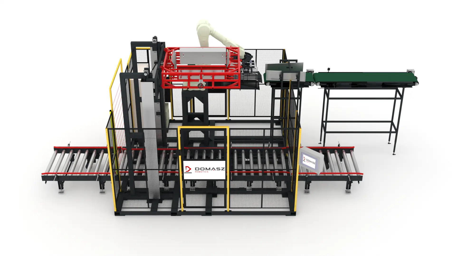 Cały proces jest sterowany centralnie przez system PLC z wizualizacją HMI i możliwością zapisywania receptur dla różnych konfiguracji układów palet.