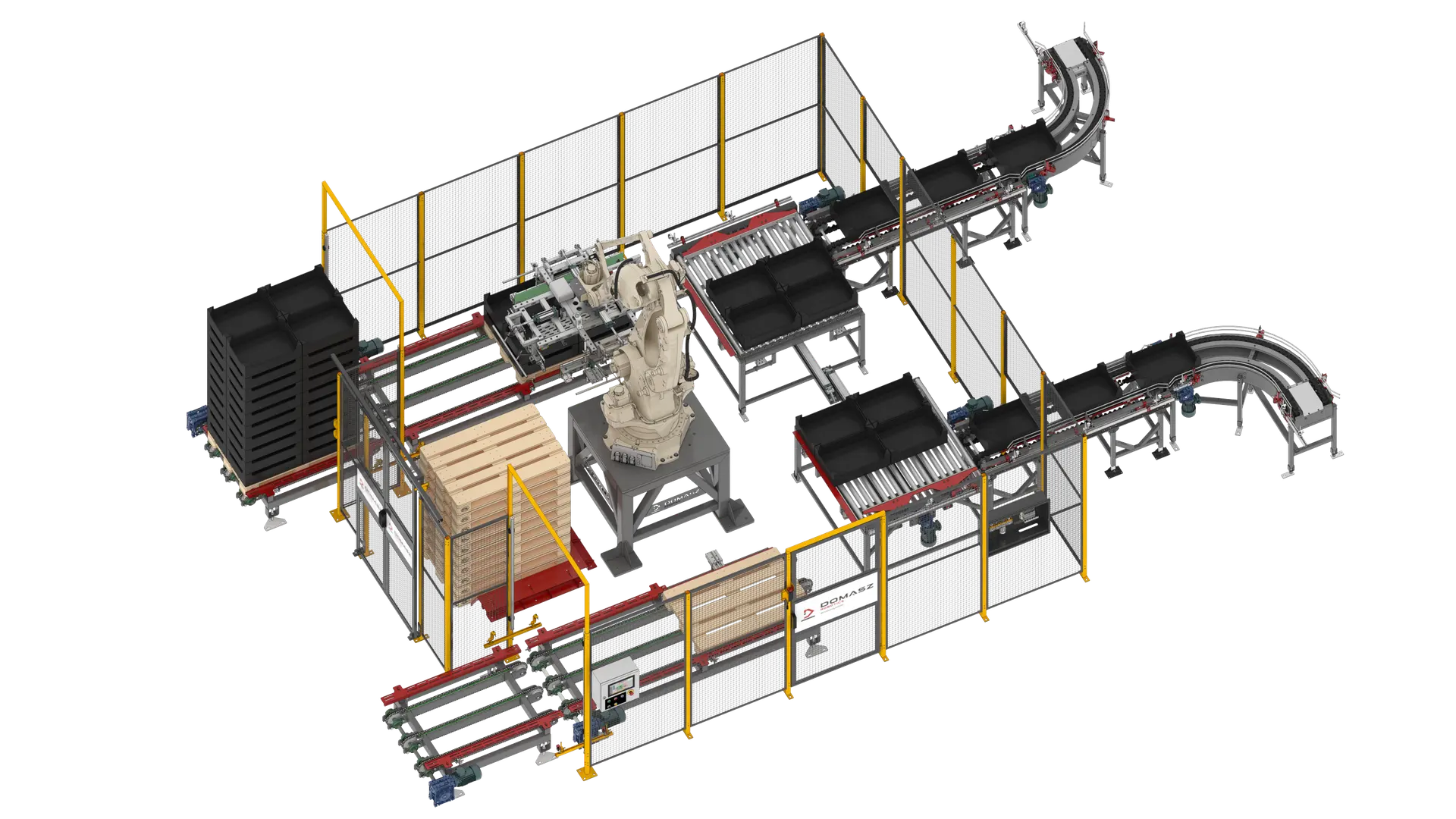 Robotyczne paletyzatory pozwalają obsługiwać wiele linii równocześnie, redukując czas cyklu.