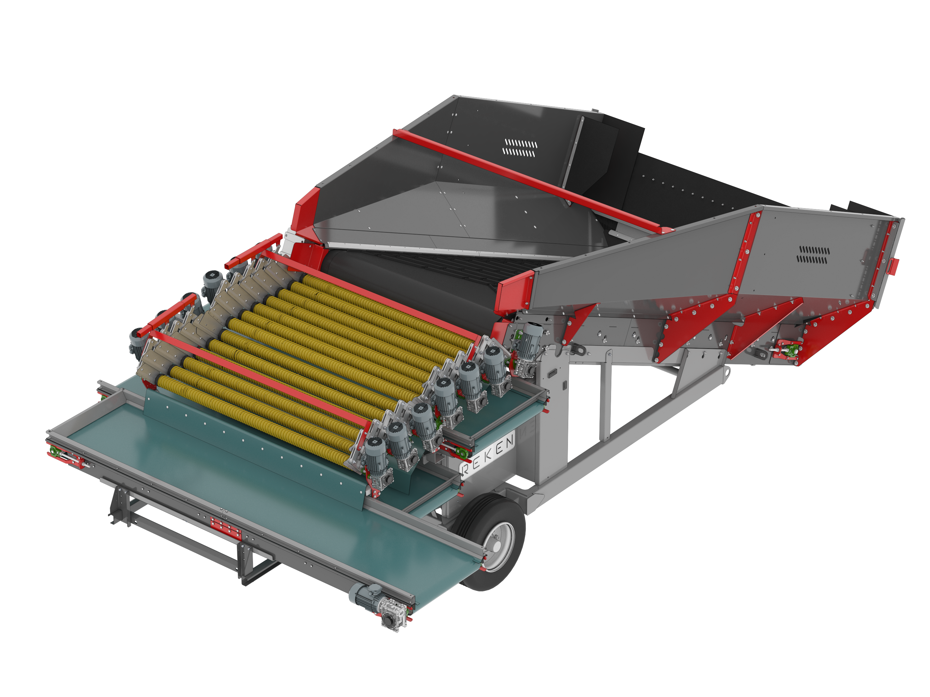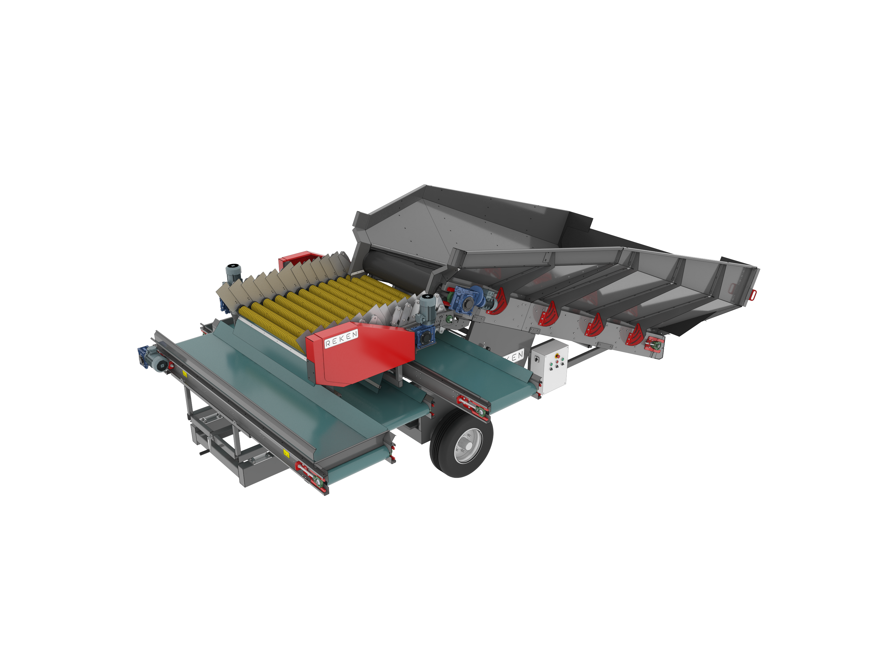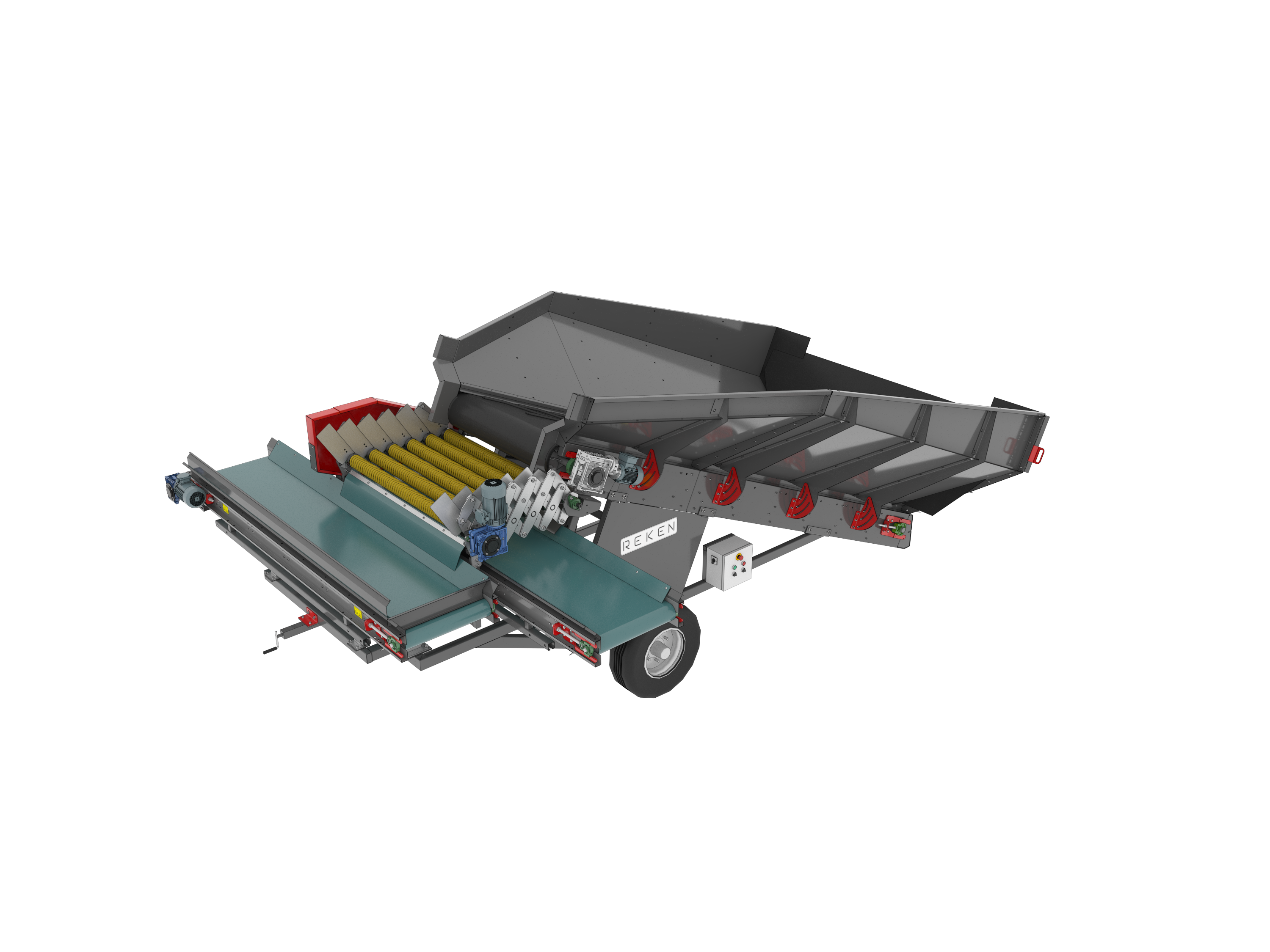 Kosze przyjęciowe REKEN umożliwiają szybkie i bezpieczne przyjęcie towaru z przyczep lub skrzyniopalet. Zapewniają równomierne dozowanie surowca i stabilny przepływ produktu już od pierwszego etapu procesu.