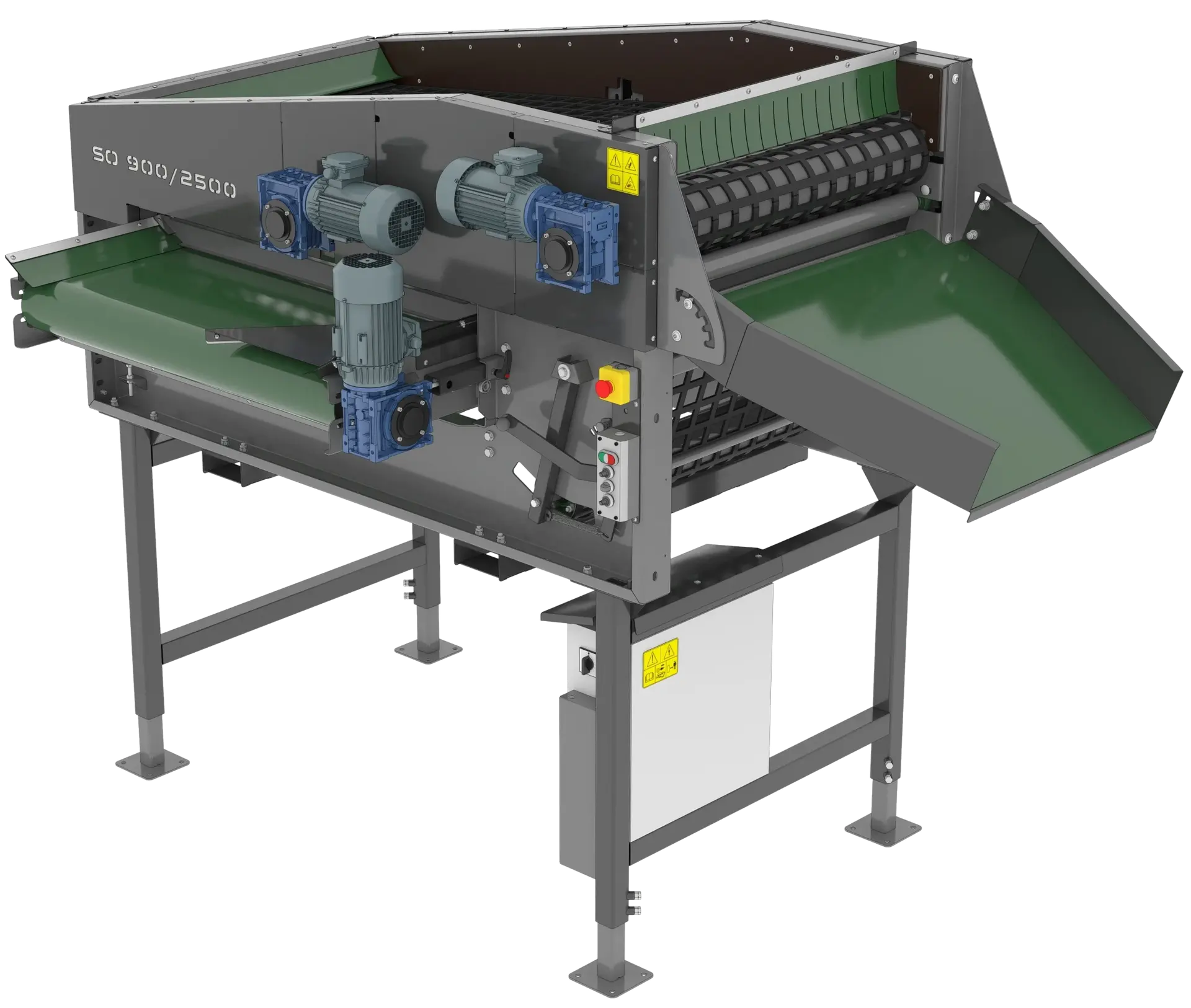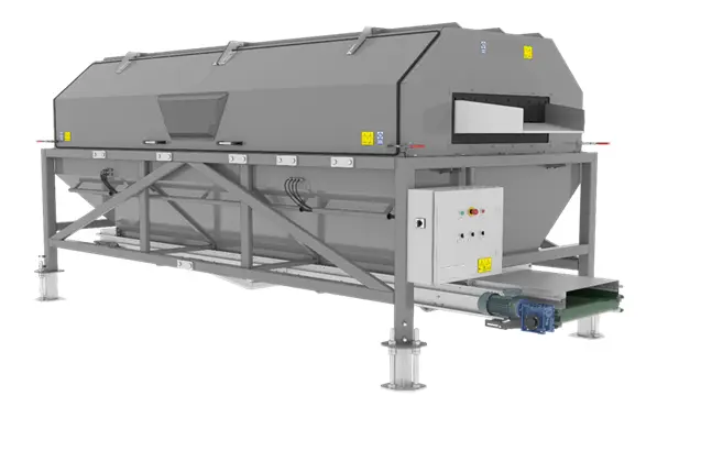 Sortownik przeznaczony do kalibracji warzyw owalnych i okrągłych w ruchu ciągłym.