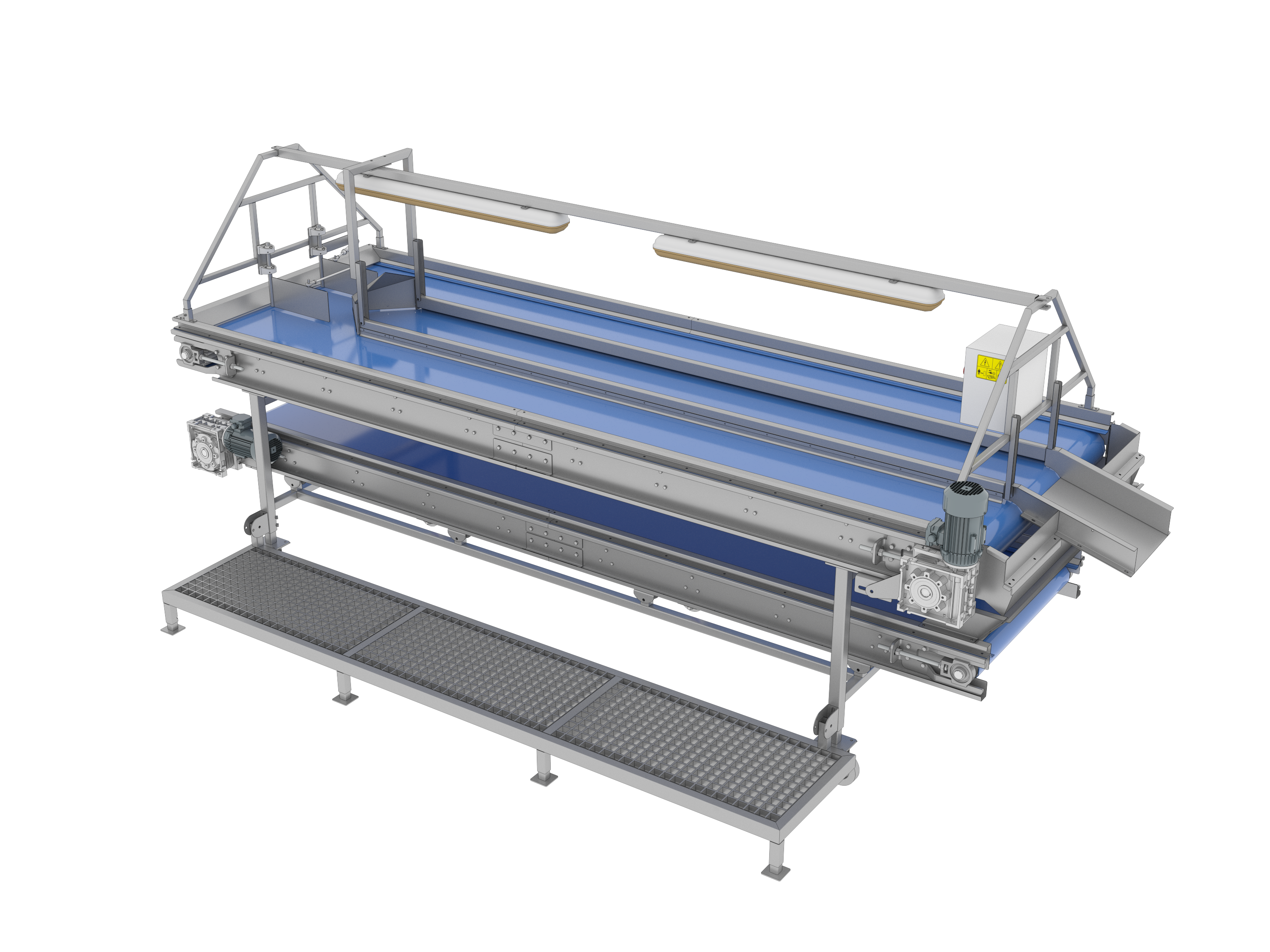 Wielofunkcyjny stół taśmowy do inspekcji ręcznej produktów i warzyw liściastych.