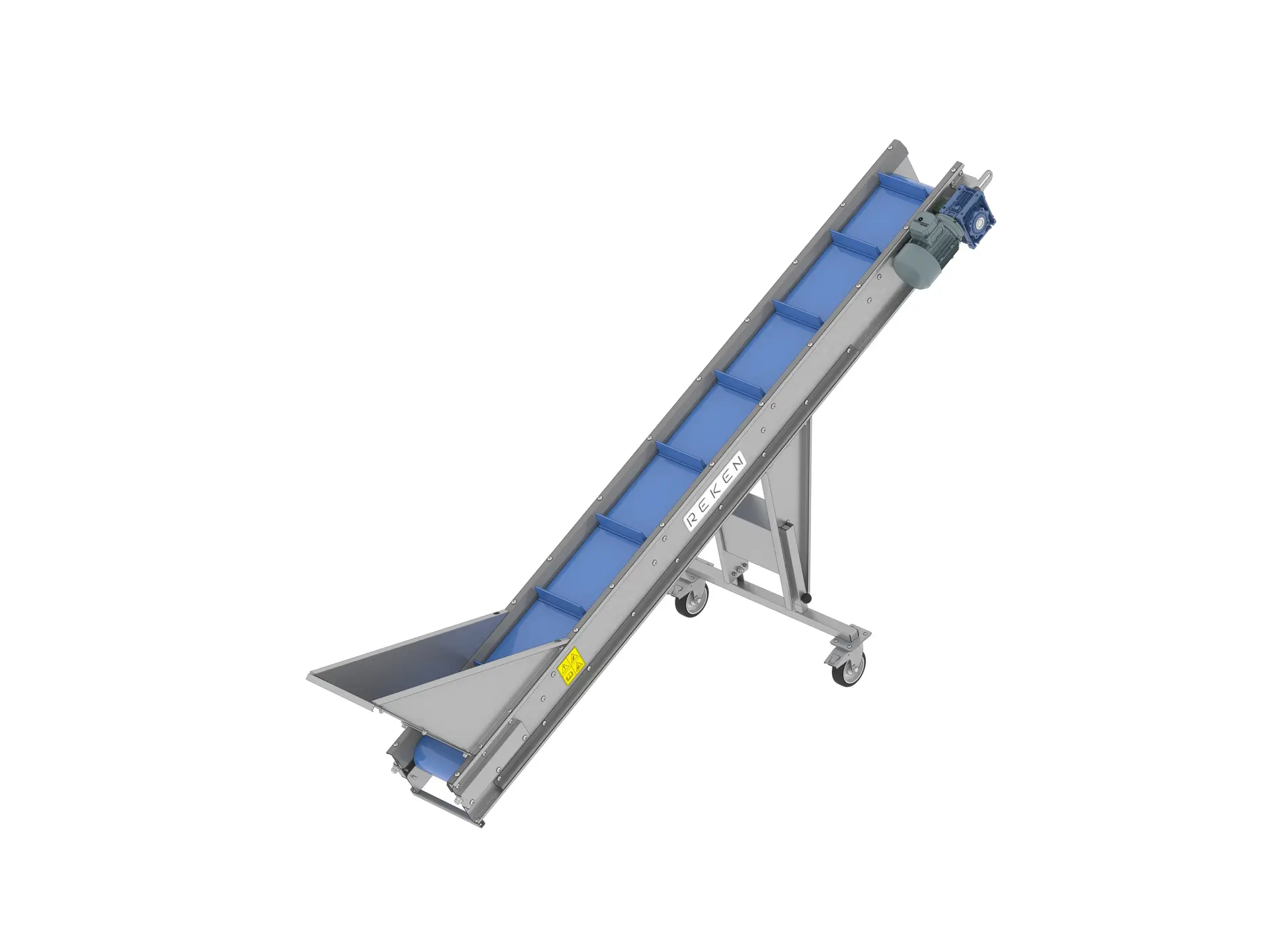 System buforowania odpowiada za magazynowanie pośrednie produktu oraz jego równomierne podawanie na kolejne sekcje. Bufory REKEN — zarówno klasyczne, jak i zintegrowane z wywrotnicami — umożliwiają dopasowanie prędkości taśm i pojemności do wydajności całej linii.