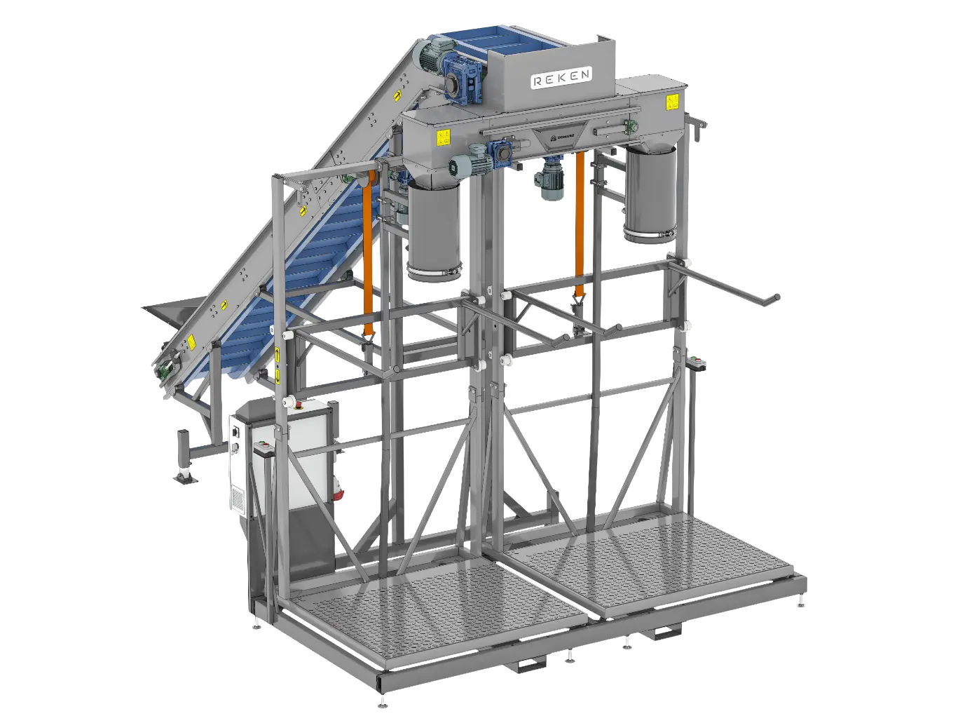 Automatyczne systemy pakujące REKEN zapewniają dokładne dozowanie i szybkie pakowanie w worki, kartony lub skrzynki. Integracja z wagami i etykieciarkami podnosi wydajność całej linii.